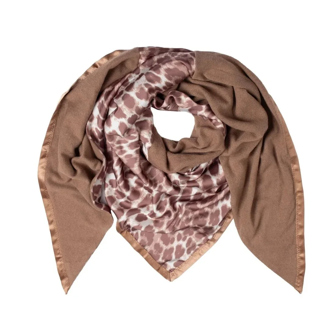 Dieser Triangle Schal besticht durch seine harmonische Farbgestaltung. Der olivbraune zeitlose Leoprint verschmilzt gekonnt mit dem Cashmere-Mix in Camel eingefasst in karamell. Dieser XXL-Schal ist ein der perfekte Begleiter für jeden Tag, da er in seiner dezenten Auffälligkeit zu jedem Look passt.